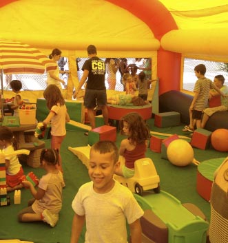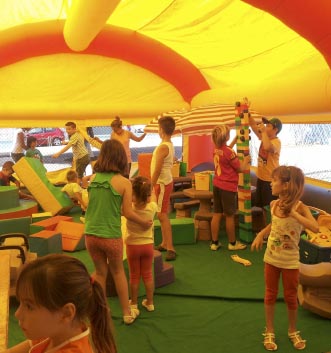Ludoteca infantil de recinto cerrado con Carpa Hinchable de 10m x 5m. Especial para niños de 5 a 11 años. Transporte + Montaje + Desmontaje + Seguro de Responsabilidad Civil.